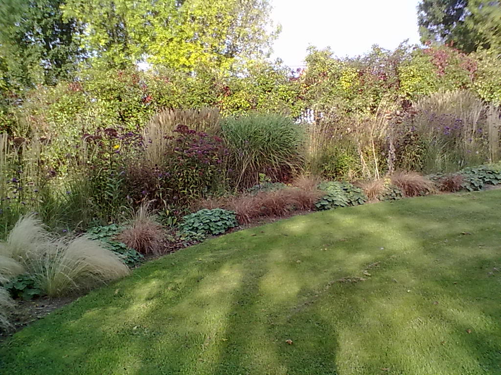 As I said, my garden slopes away from the house, so I had terraced it, using log roll edging to hold back the top terrace, and putting in two shallow steps in the middle.