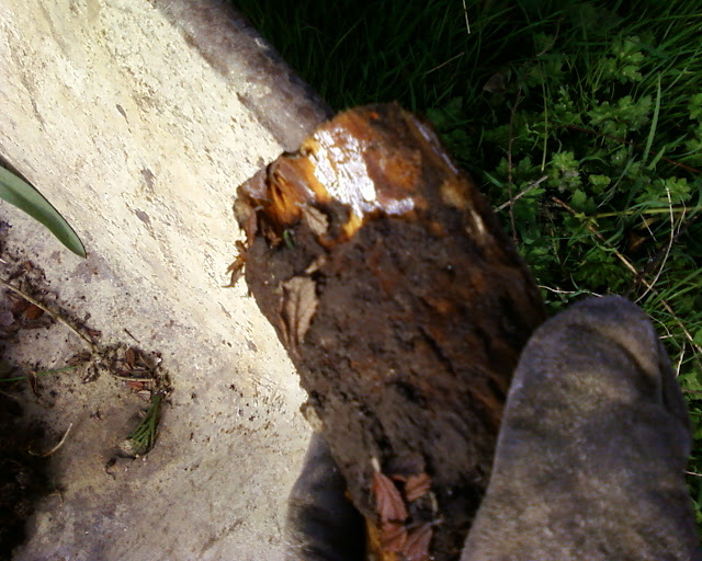 I'm not quite sure if you can see that clearly - the white fungus-ey stuff under the bark is, I think, honey fungus. It would be referred to as the scourge of South Oxfordshire, but Muscari (grape hyacinth) already has that title.